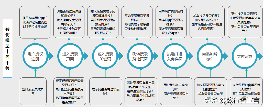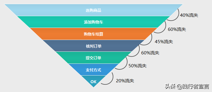 做运营永远离不开“模型”,做转化率同样如此,用户从搜索到最终成交的几个必经过程步骤,用户在流程中的走向一定是逐渐减少的,我们要做的是减少每一个步骤过程中的用户流失率!