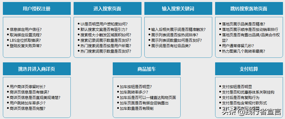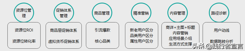 一个有效的UV如何实现一个有效的CR。我们按6个大的纬度来拆解:资源位管理,促销体系管理,商品管理,精准营销,内容管理和路径诊断。